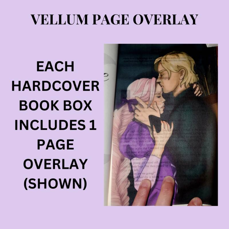 This book box includes: 1 piece of NSFW spicy character art, an exclusive bookmark, spicy tea, spicy book stickers, and one page overlay (see above)! ONLY 24 WILL BE AVAILABLE! (Limit 1 per order)